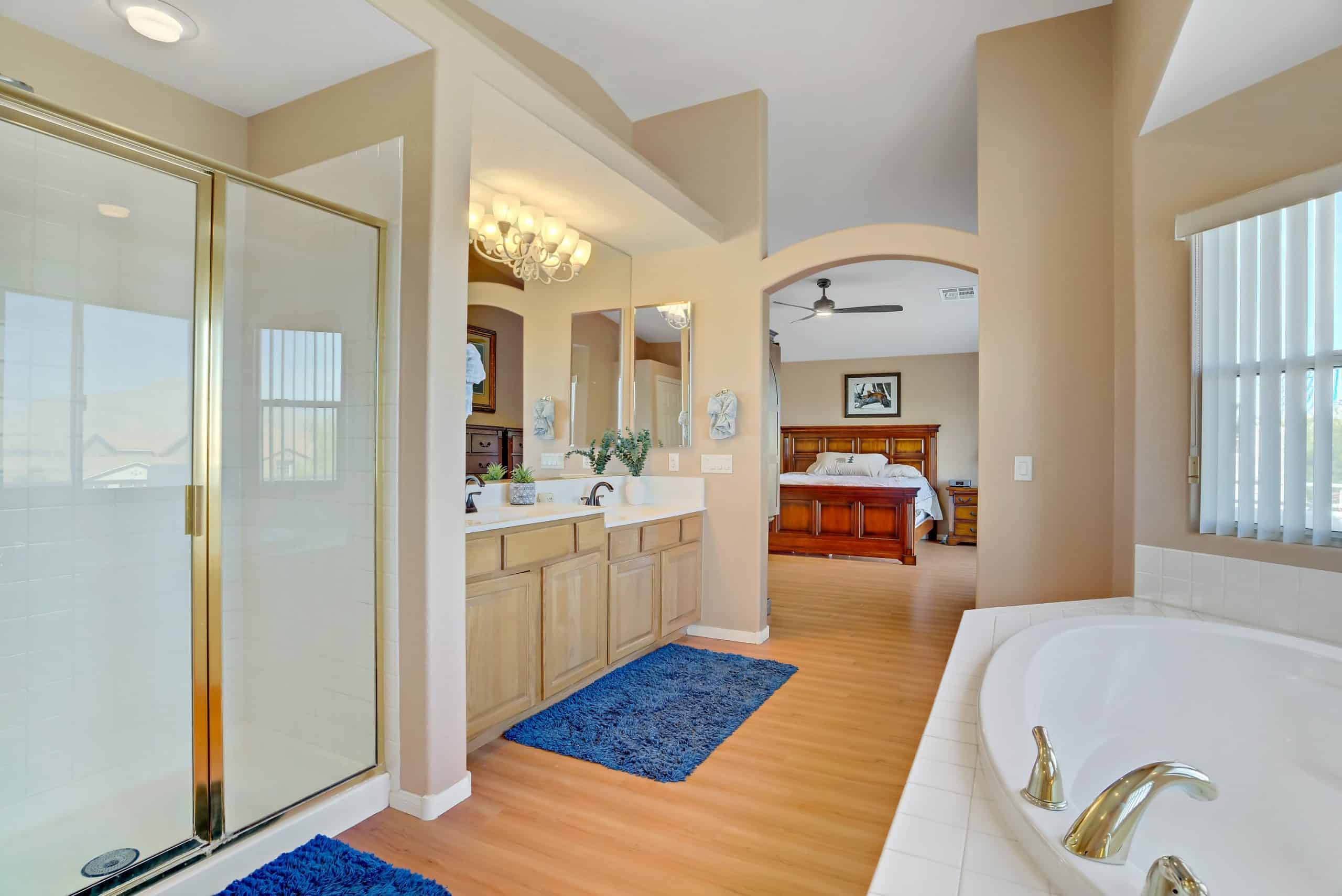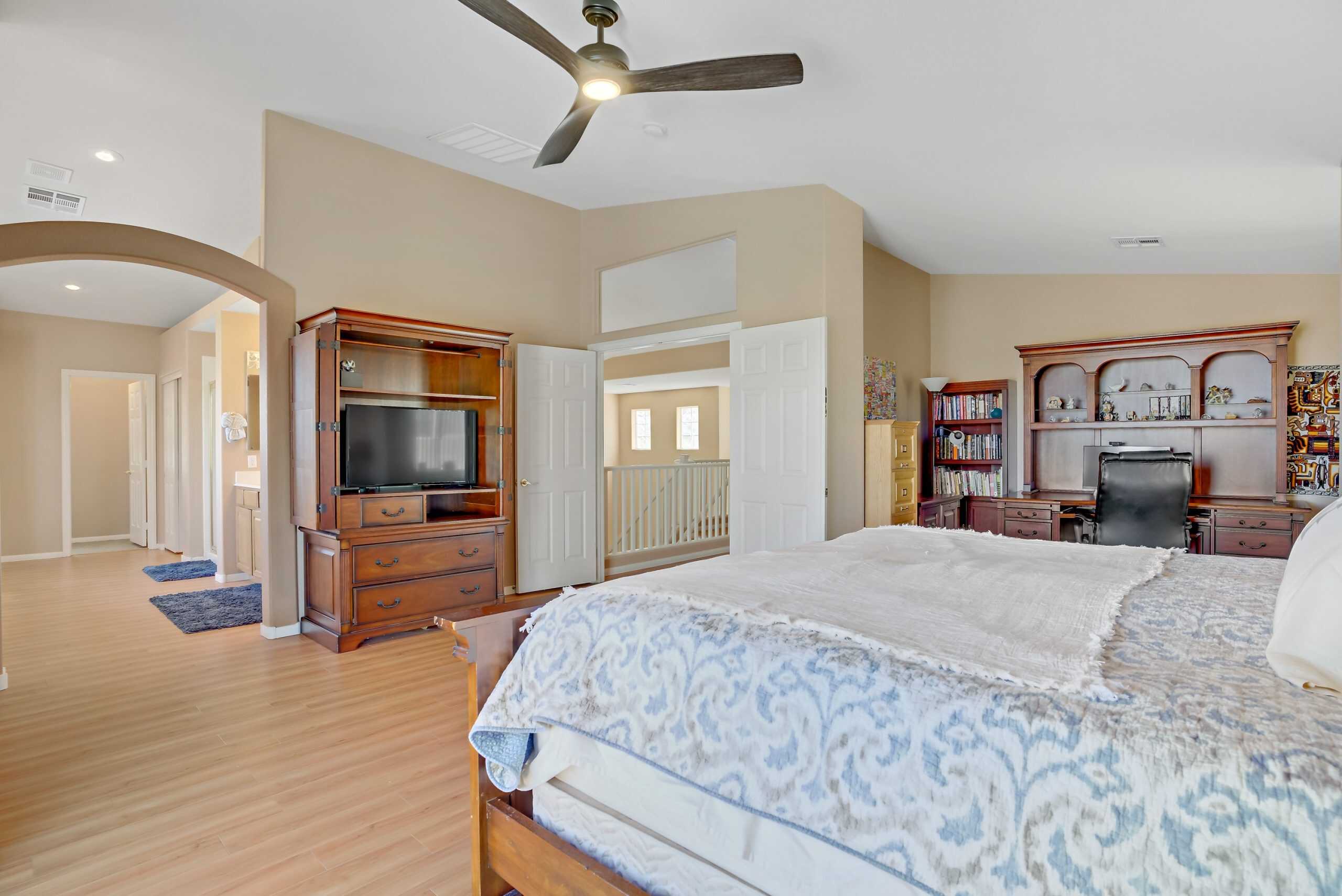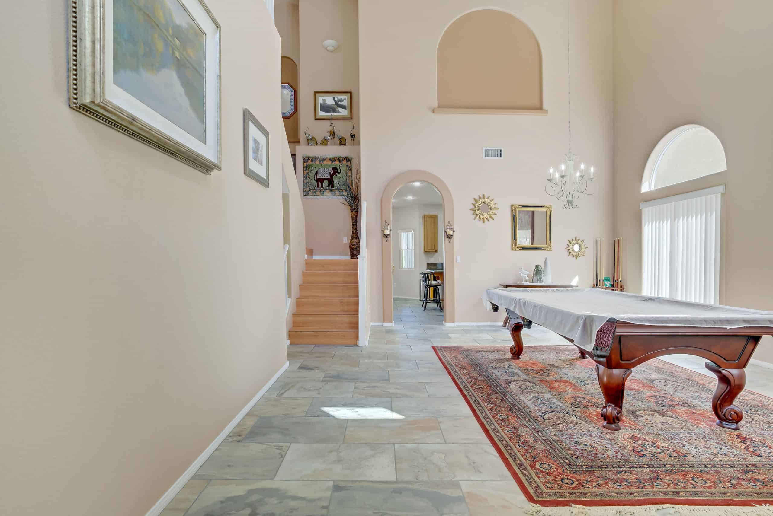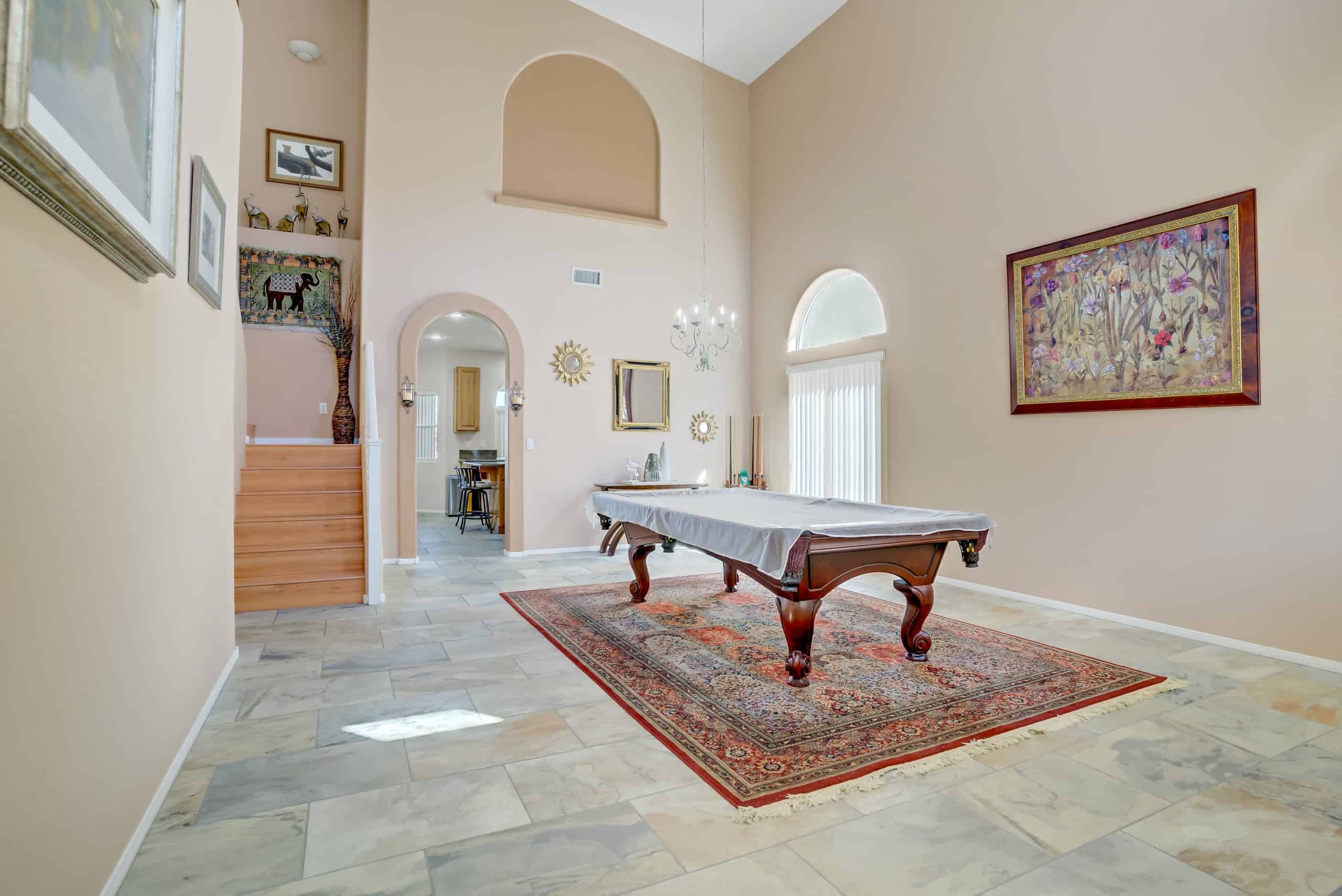 Nestled at the foot of Red Rock National Park with hiking and biking trails just outside your door, this rare opportunity in the gated Lone Mountain West community offers the perfect blend of nature and city living. The home is ideally located near a spacious park filled with lush grass.