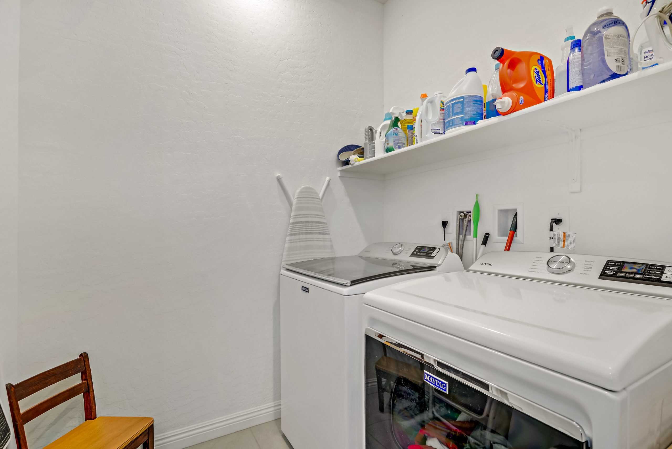 This 2-bedroom, 2-bathroom residence features a split floor plan for privacy, a kitchen with tasteful upgrades including Corian countertops, gray cabinetry, stainless steel appliances, fun backsplash, breakfast bar, and pantry. The extended garage offers space for a truck, boat, or both — a rare find in the community.