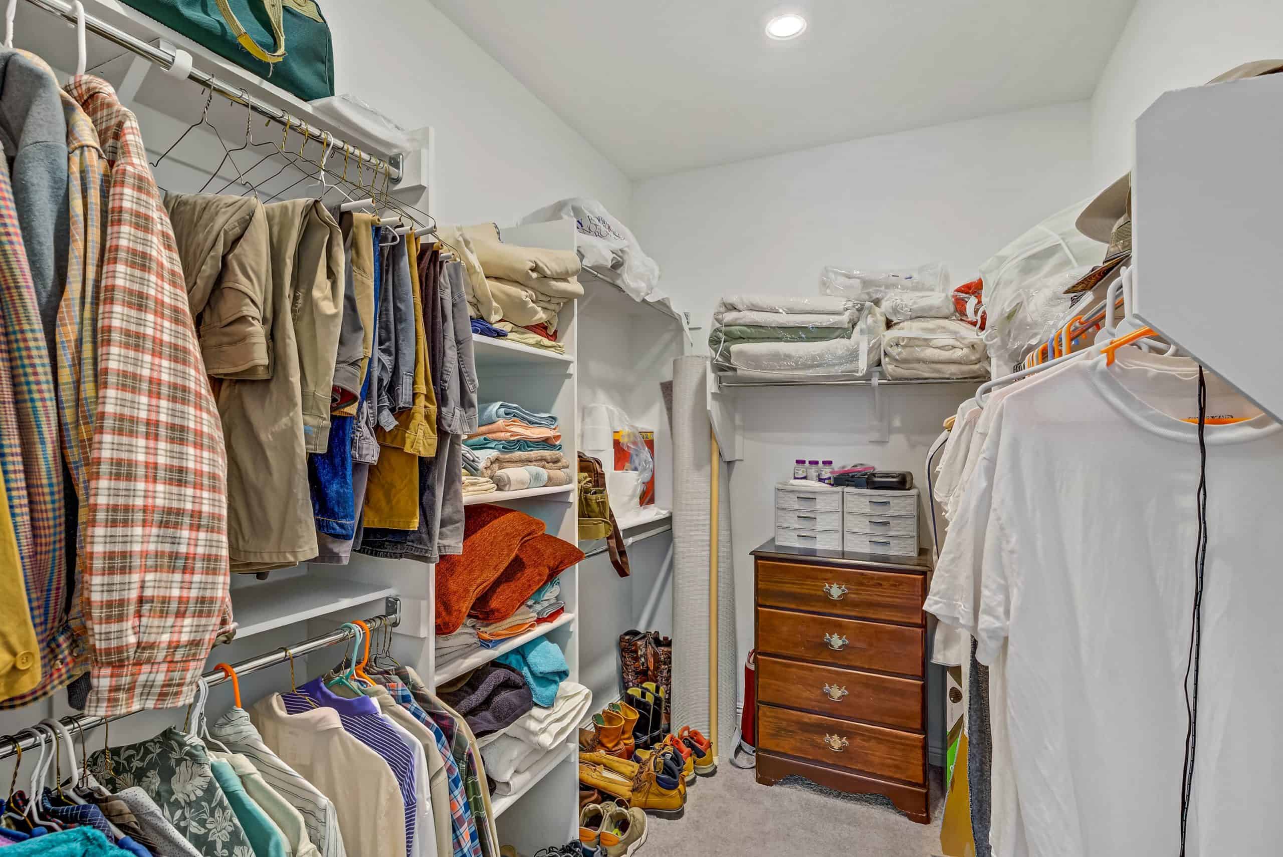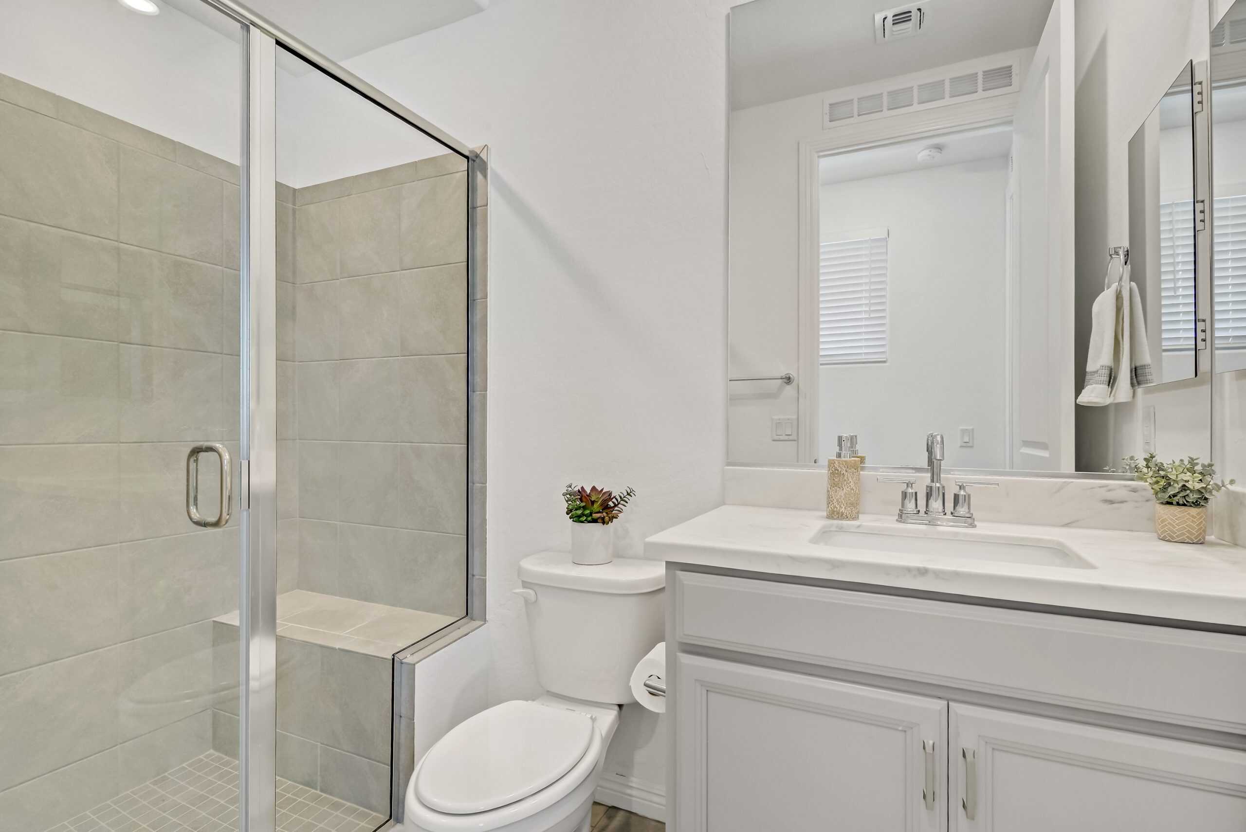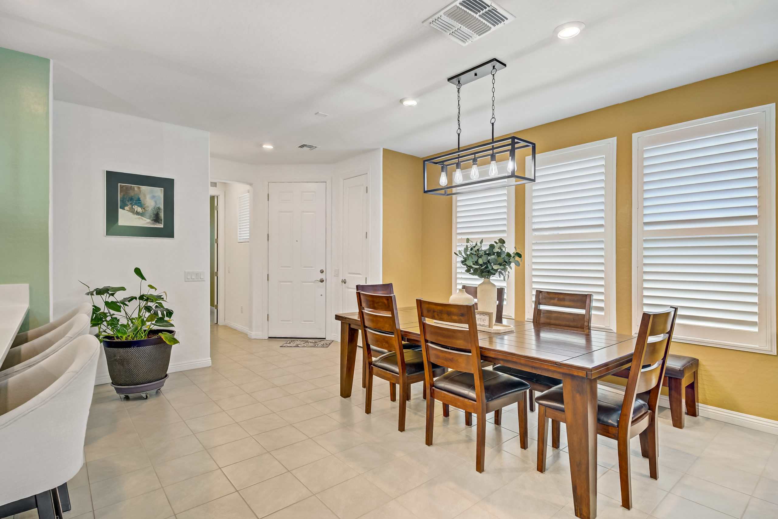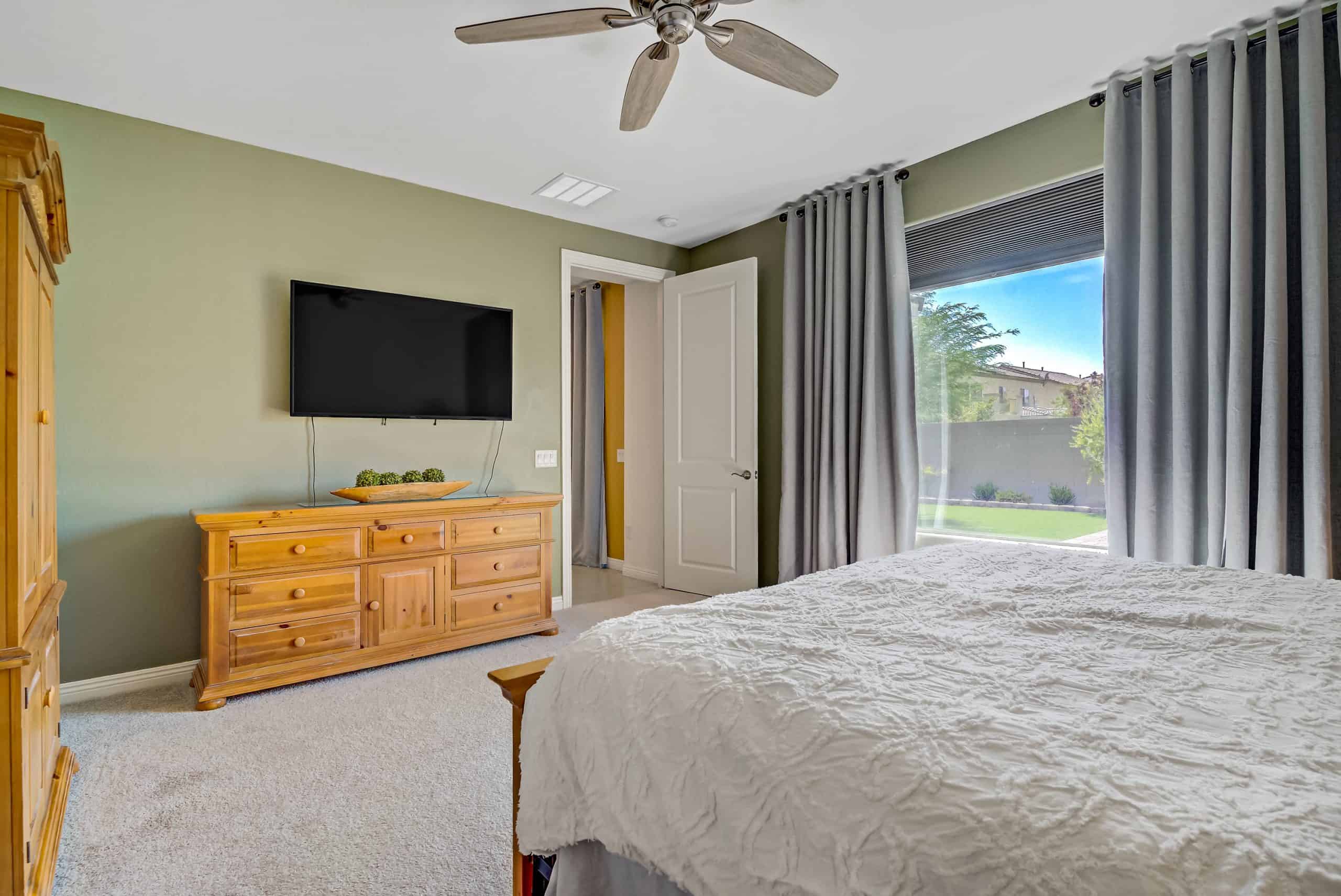 The primary suite boasts a spacious walk-in shower with a seat, dual vanity, walk-in closet, and serene backyard views. Outdoors, enjoy a landscaped, low-maintenance yard with electrical to the paver patio for a hot tub, a covered patio with retractable shade, and no neighbors behind.