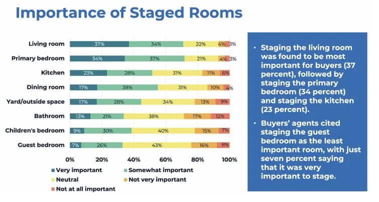That’s nearly 9 out of 10 agents acknowledging the undeniable pull of a well-staged space. Translation? When buyers walk into a staged home, they’re far more likely to mentally move in.
